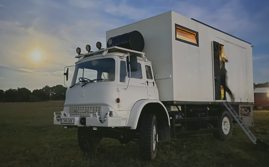 Their journey into off-grid life has evolved over time. They had both experienced Vanlife before, first in a temperamental Luton van then a more modern Fiat Ducato campervan. They enjoyed the connection it provided with the outdoors and wild places. “One of the struggles we found when living full-time in a van as a couple was space. That was the main driving force in going bigger this time. If one of us falls ill or needs to sleep-in we now have enough space for the other to make some food, work or relax without disturbing the other.” Last year Jess and Dan bought a 40-year-old lorry. With some help, they had it custom-built into their current home – a completely original off-grid house truck. They moved into their converted home this year.